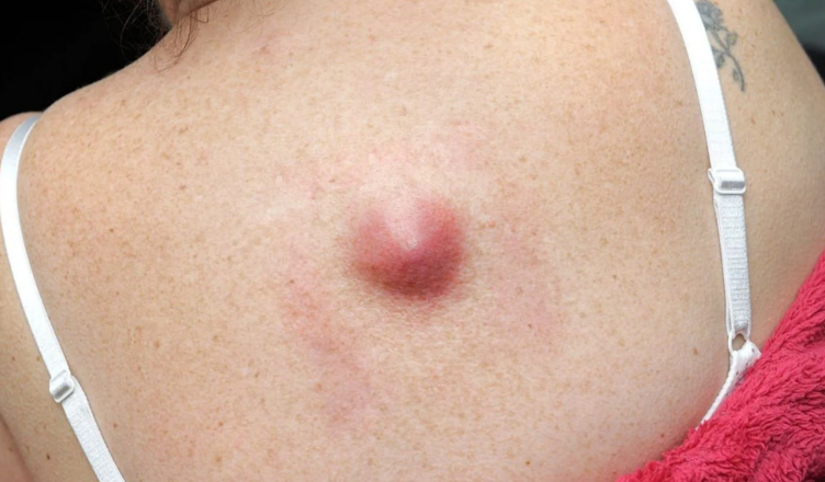 - Guzek, który wygląda na dobrze widoczny pod skórą