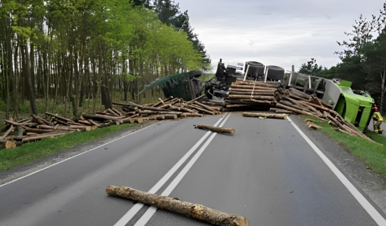 Drogowy horror rozegrał się w piątek, 12 kwietnia w miejscowości Mokre. Tuż za skrzyżowaniem ciężarówka zderzyła się z fordem. Kolos z przyczepą, przewrócił się na bok. Na drogę rozsypały się przewożone kłody drewna. Osobowy ford wpadł do rowu.