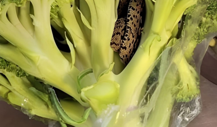 A: Wąż prawdopodobnie dostał się na pole brokułów, zaczepił się o warzywa i przypadkowo wylądował w torbie.