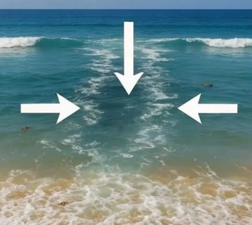jeśli na linii przyboju jest odcinek, gdzie fale się nie rozbijają, a morze wydaje się spokojniejsze — może to być strefa prądu wstecznego;